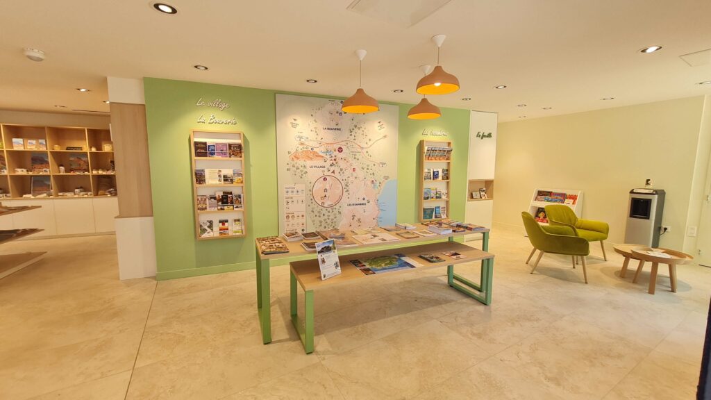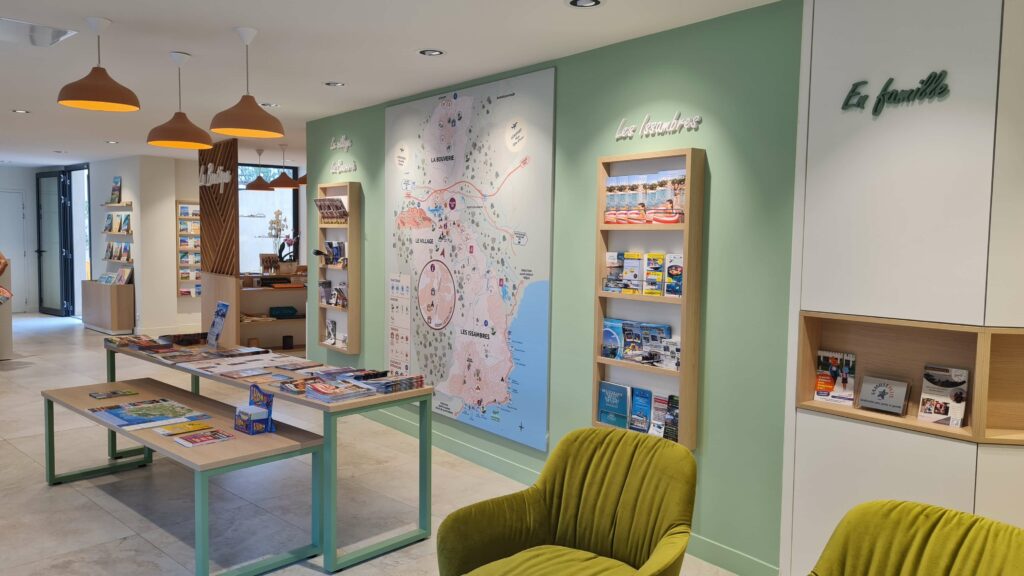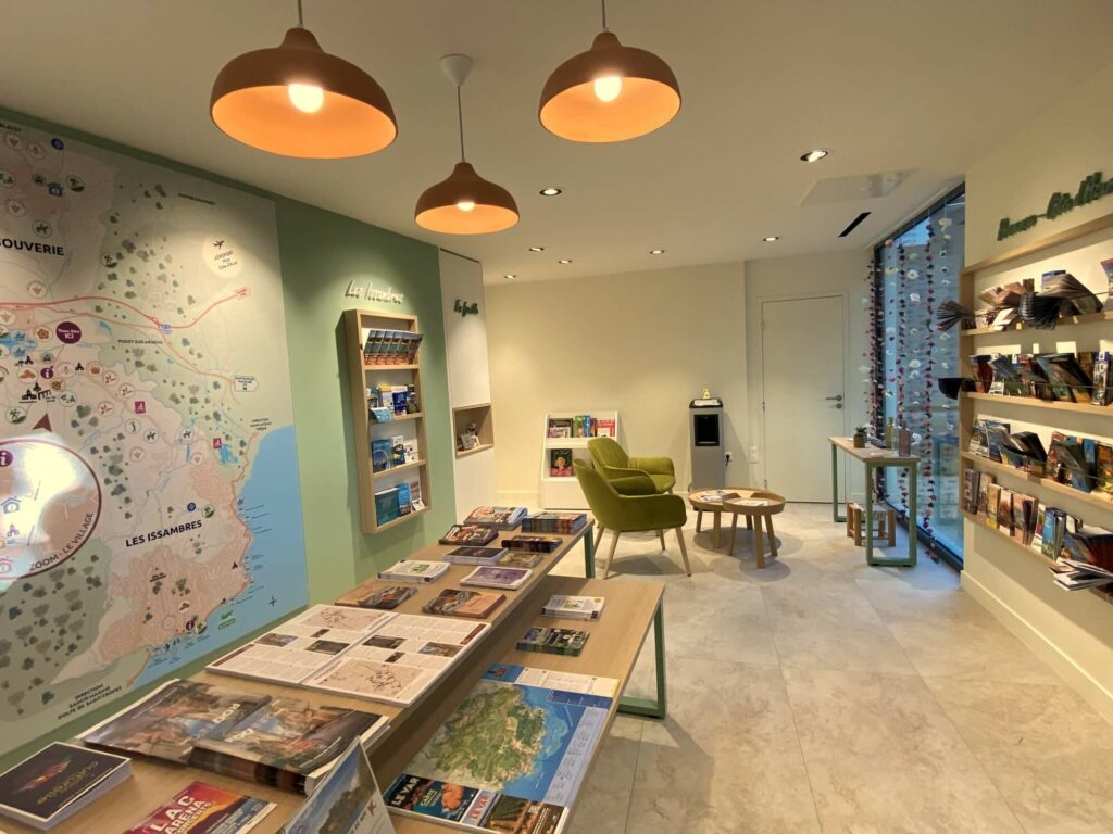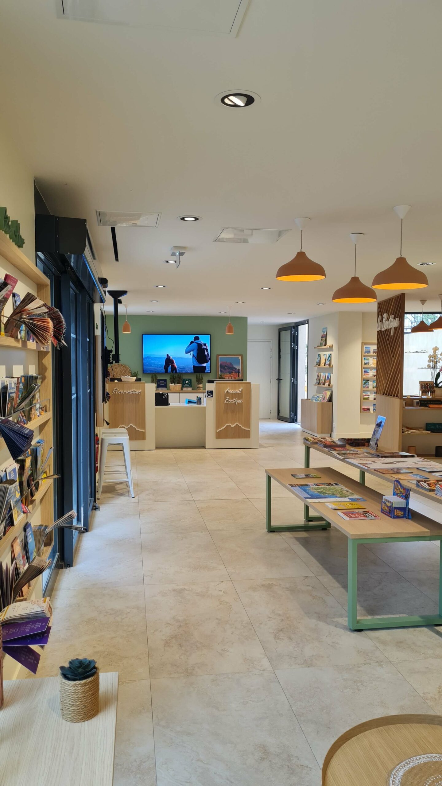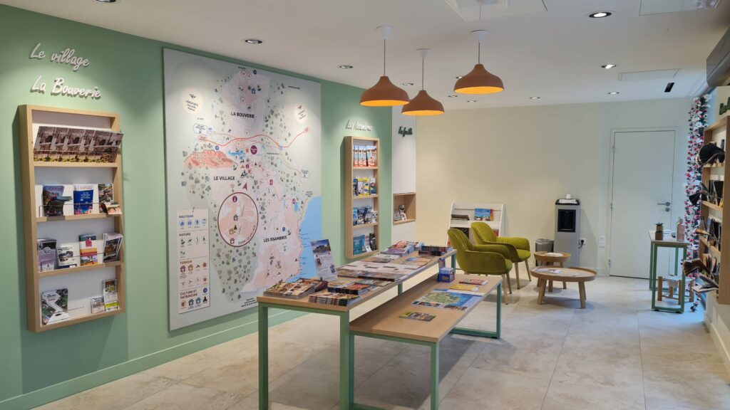 - Conception architecturale et d’aménagement intérieur sur-mesure : En tant qu’architecte d’intérieur, j’ai repensé l’espace de l’ancienne agence bancaire pour l’adapter aux besoins d’un Office de Tourisme : accueil, information, espace d’attente, bureaux. L’agencement a été conçu pour faciliter l’interaction avec les visiteurs et mettre en valeur les atouts du territoire.