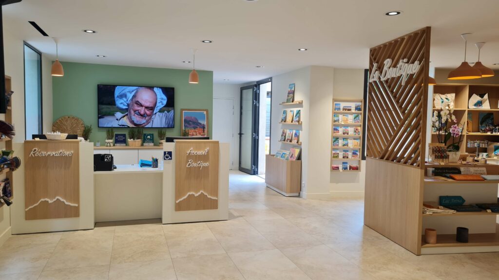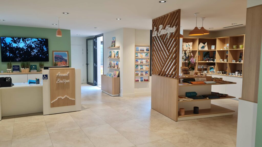 - Définition d’une ambiance moderne et provençale : Le défi était de marier la modernité nécessaire à un lieu d’information touristique avec l’authenticité et le charme de la Provence. J’ai travaillé sur les couleurs, les textures, l’éclairage et les éléments décoratifs pour créer une atmosphère chaleureuse et immersive.